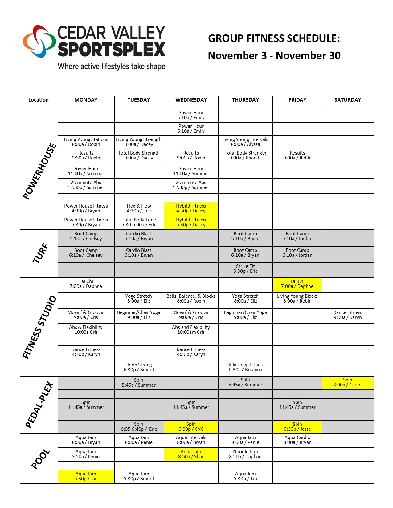 Aqua Fusion — Fun, upbeat, and exciting blend of all the Aqua classes offered here at the SportsPlex. Aqua Fusion will keep class fresh and new to be sure time flies by.
