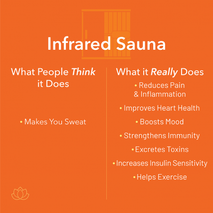 Infrared offers a more enjoyable, pleasant experience. It warms the body from within instead of just heating the air around you. This provides a unique opportunity for health benefits beyond a traditional sauna.